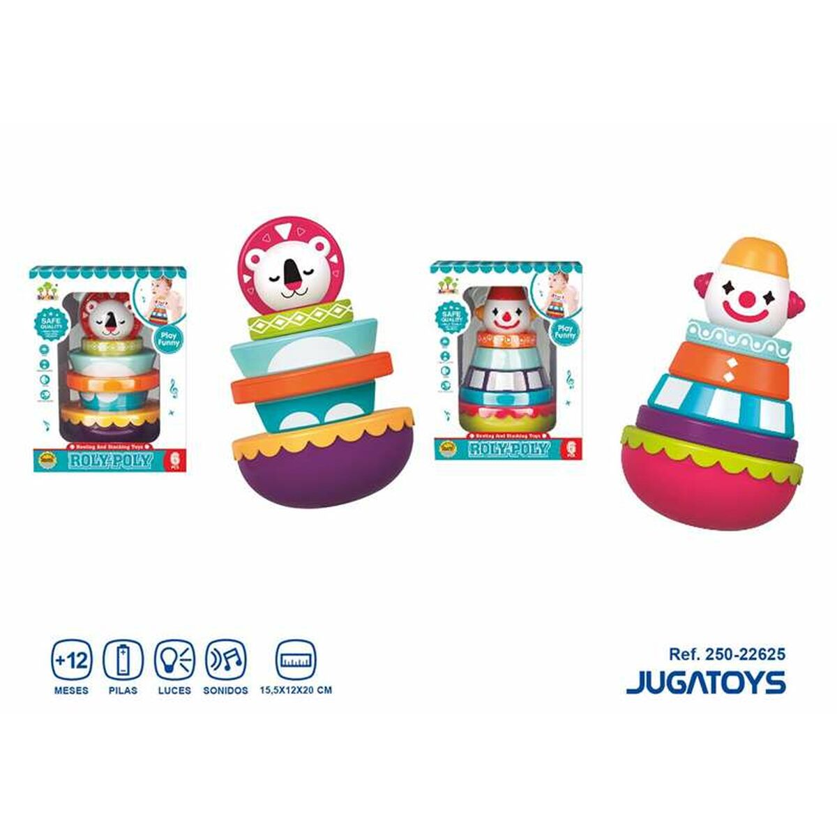 The baby doll from the BigBuy Fun brand is a toy specially designed for children aged 3 years and up, ideal for encouraging active play and motor coordination in young children. It is available in two assorted models: a roly-poly clown or a musical lion, both with compact dimensions of 15.5 x 12 x 20 cm, perfect for easy handling by kids. Its roly-poly design allows the doll to keep moving when pushed, promoting fun and curiosity while stimulating balance and visual perception. The built-in musical feature adds an extra sensory element that enhances the play experience, helping to capture children’s attention and improve auditory recognition. Additionally, its materials and finishes are designed to meet safety standards appropriate for the recommended age, ensuring safe and suitable use. This product combines traditional play with sound stimuli, making it a versatile option for children’s entertainment. Overall, the BigBuy Fun baby doll offers a balance of fun, learning, and design tailored to the needs and abilities of young children.